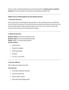 Mobile Pressure Washing Business Plan (Simple Version)